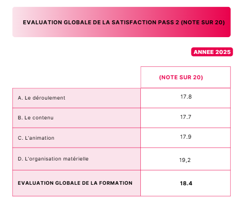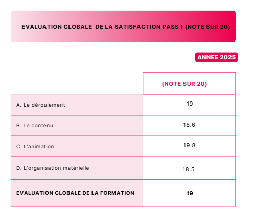 Pour 2024, 100% des stagiaires ont été validés avec minimum de 80% d'atteinte des résultats au quizz.